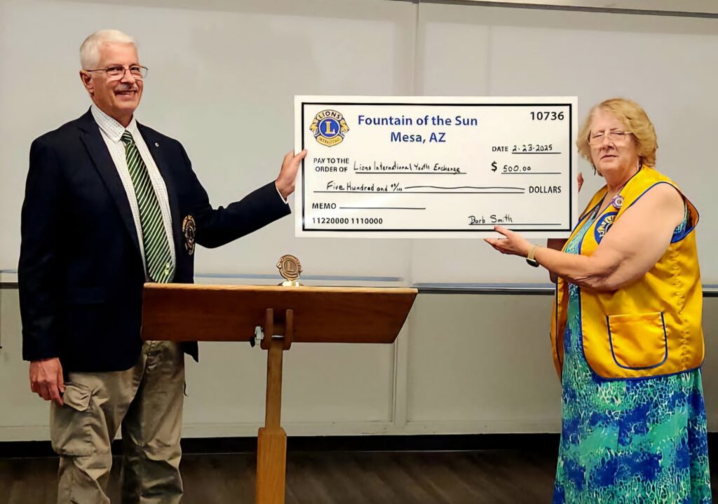 The Lions Club is a global organization focused on serving the local community. The Mesa Fountain of the Sun Lions Club was established in 2009. We strive to give sight, serve the youth, and actively participate in making our community a better place.