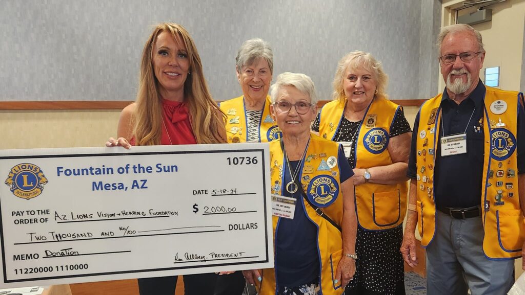 We support many efforts in the local community including collaborating with the Mesa Public Schools for Vision Screening, Fly the Flag program within the Fountain of the Sun 55+ Community Fundraiser, eye glass collection, sorting and redistribution and an Annual Food Bank collection for East Mesa Food Bank. We also support Lions of Arizona state projects as listed below: